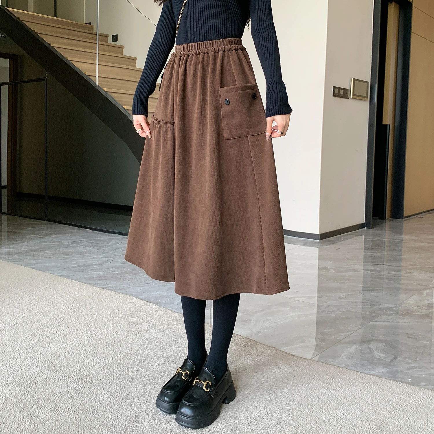 Casual High Waist Knit button A-line Long Pleated Skirts Korean Streetwear Fashion Autumn Plus Size Clothing