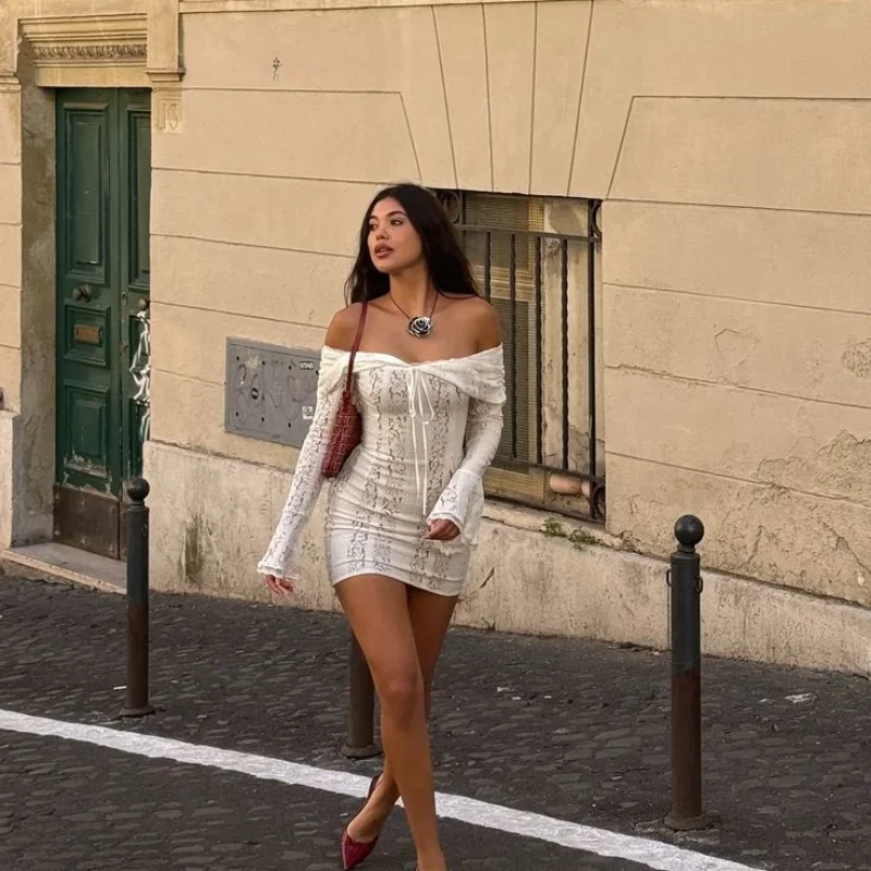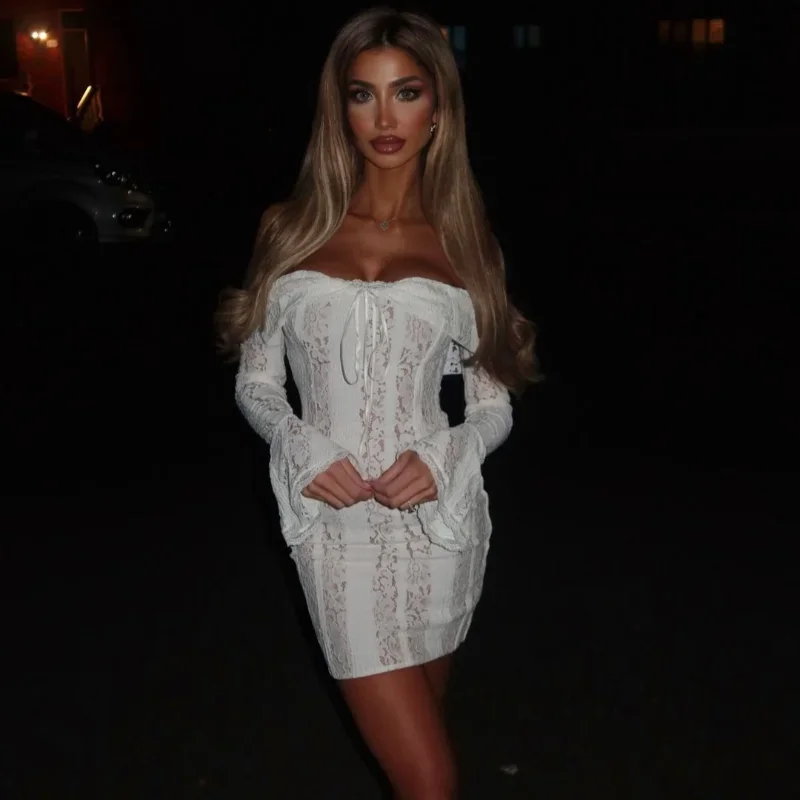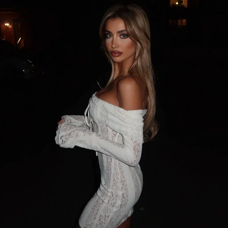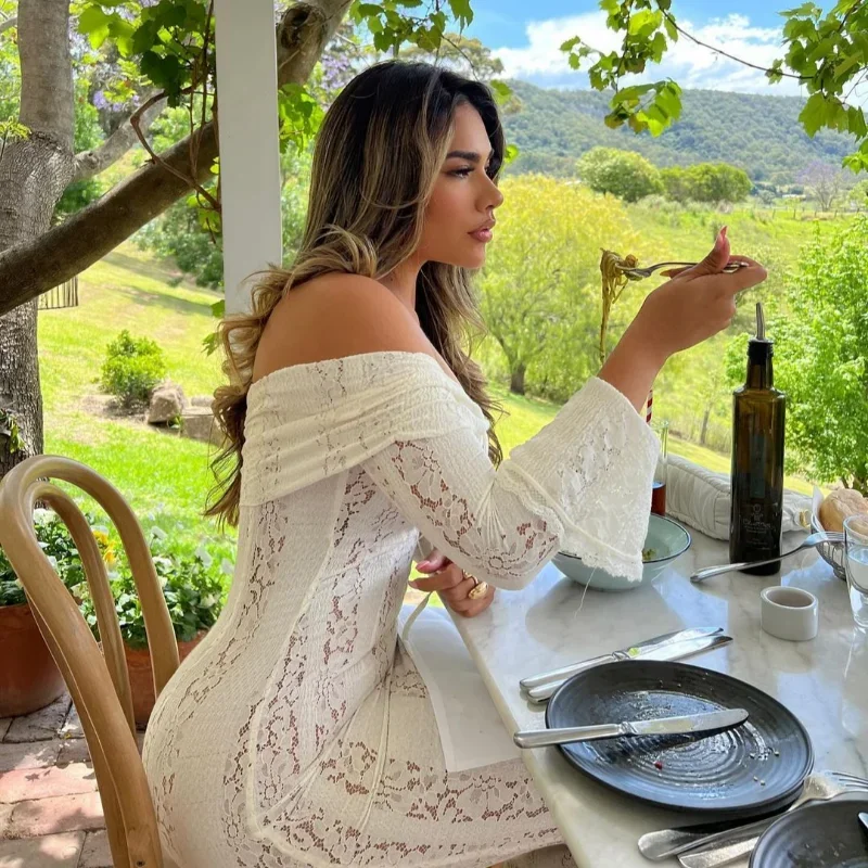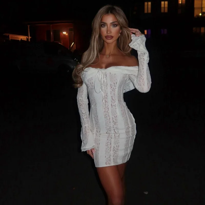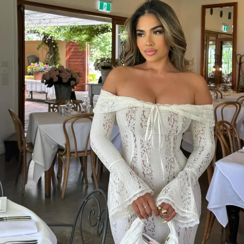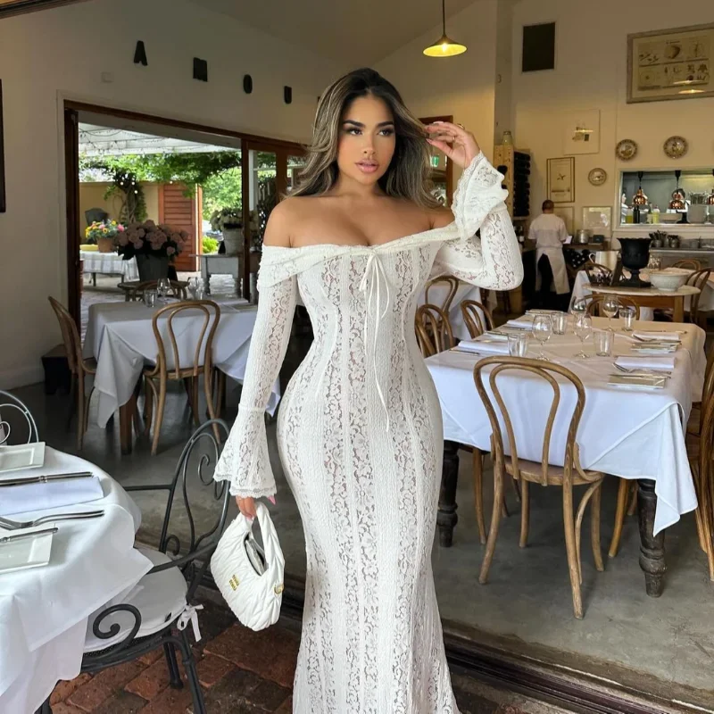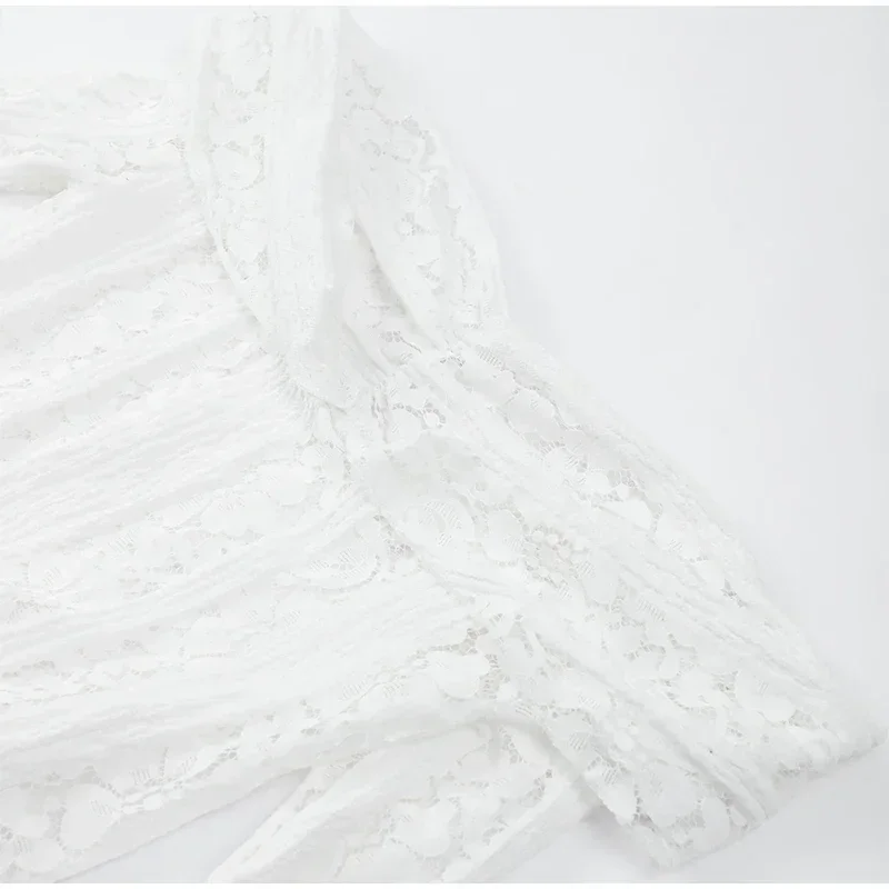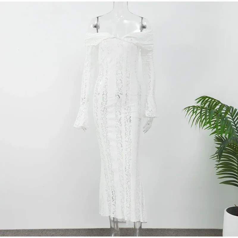 Model Number: Elegant Women White Lace Hollow Out Printed Flower Long Dress