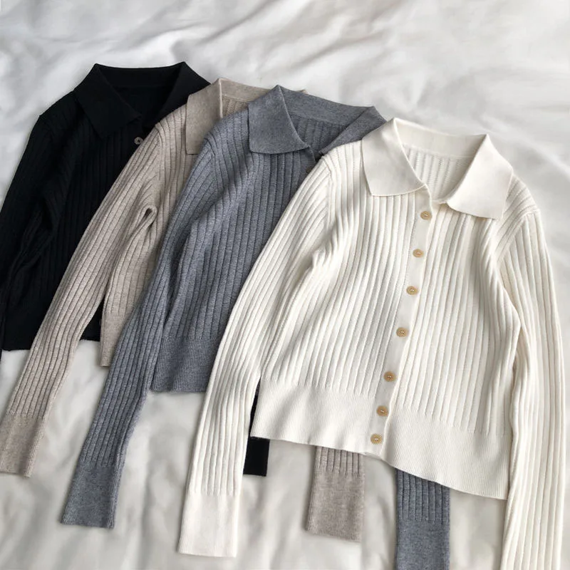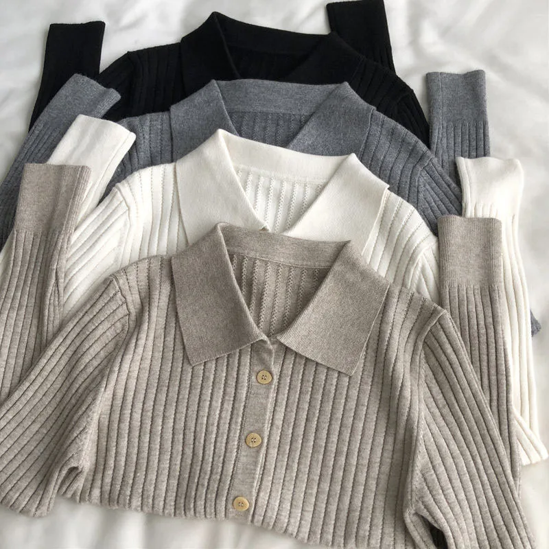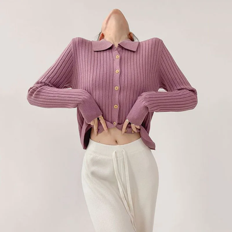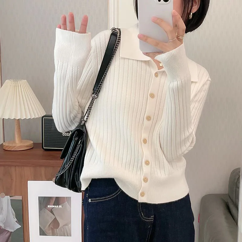 Lucyever High Quality Knit Cardigan Women Korean Fashion Turndown Collar Buttons Up Sweaters Solid Casual Long Sleeve Knitwear