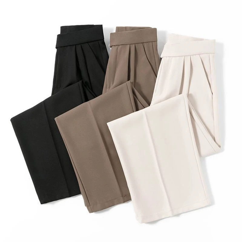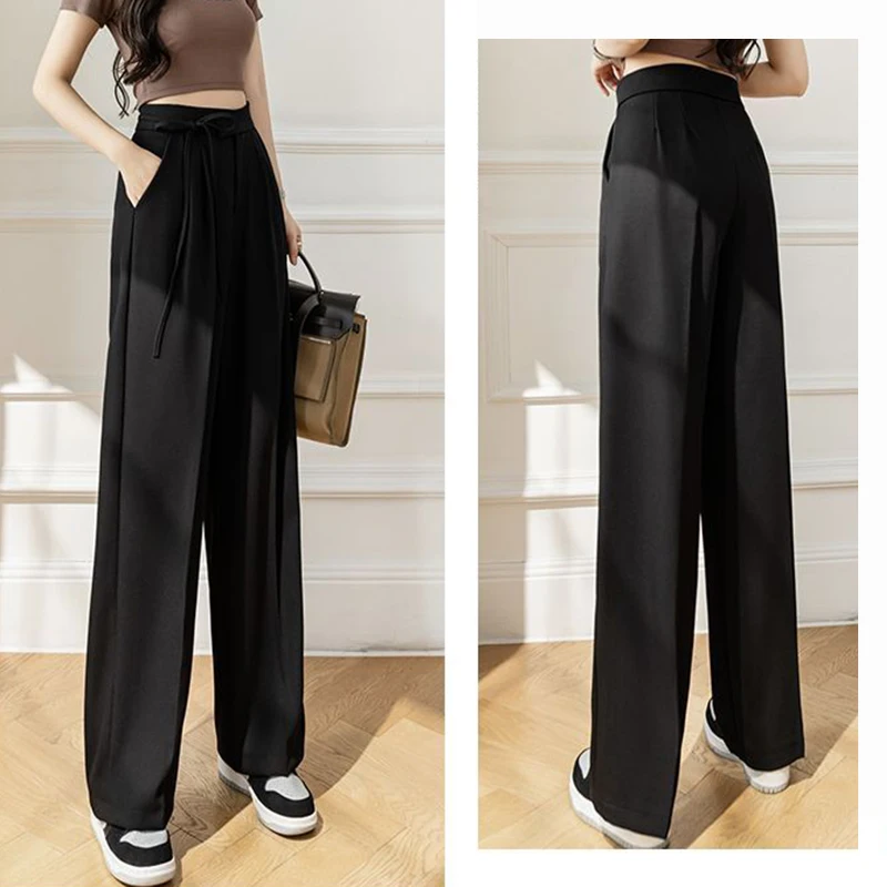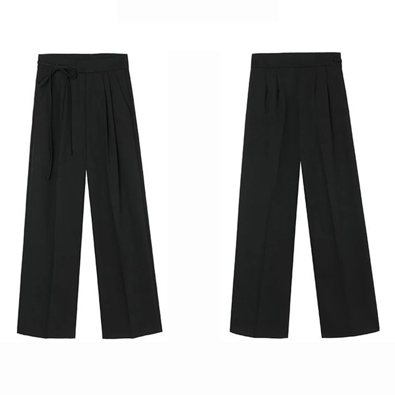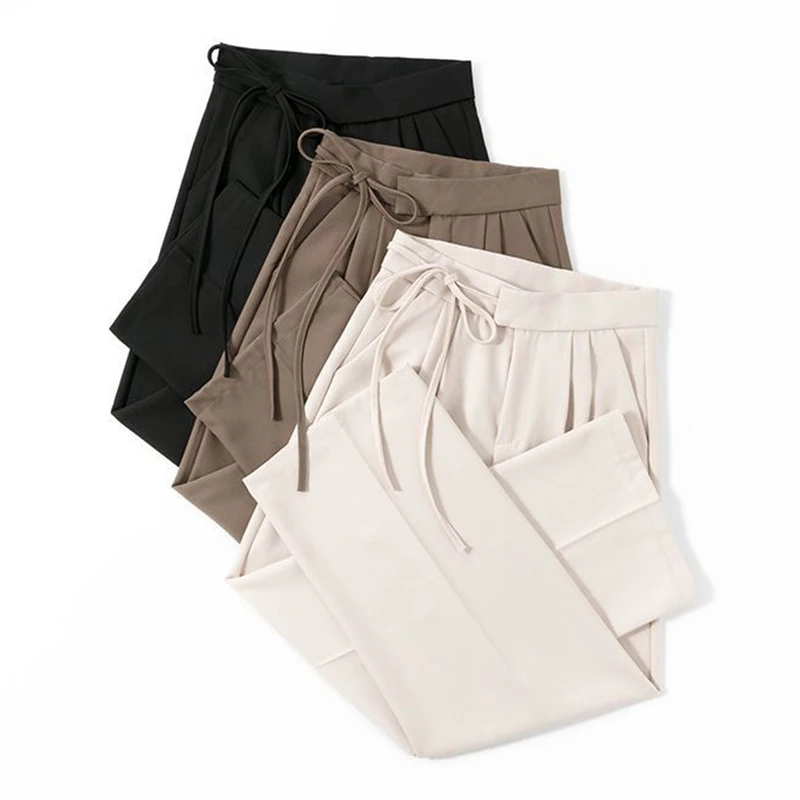 Spring Women Lace Up Straight Leg Suit Pants Female Solid Color High Waisted Trousers Lady Chic Designer All Match Work Pants