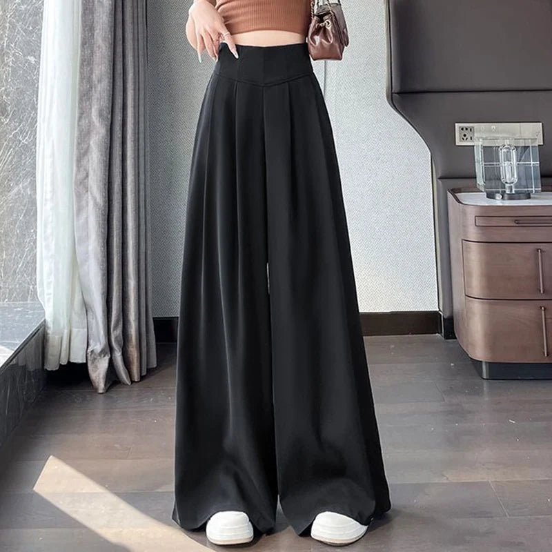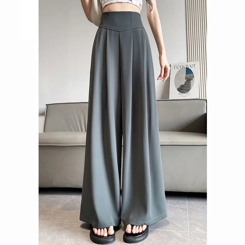2025 Spring Summer Female Concise High Waisted Pants Lady Korean Basic Slim Fit Suit Trousers Women Straight Leg Baggy Slacks