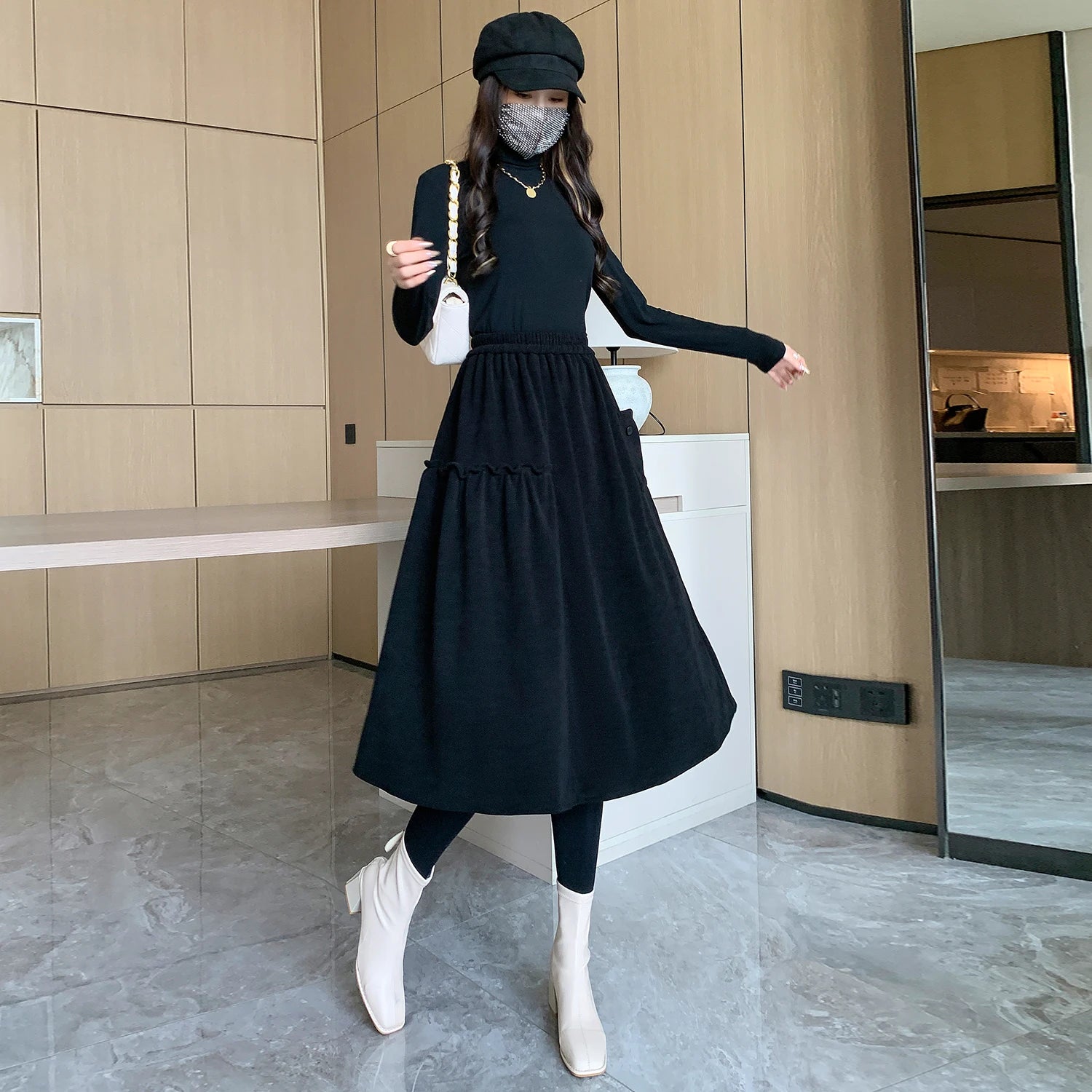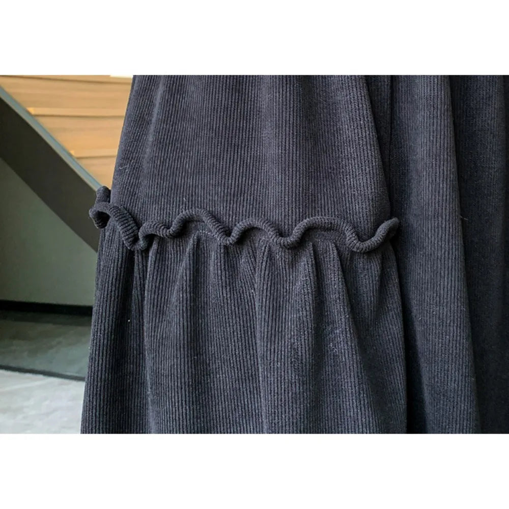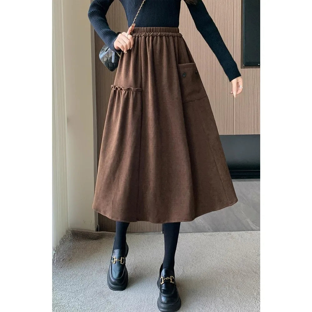 Casual High Waist Knit button A-line Long Pleated Skirts Korean Streetwear Fashion Autumn Plus Size Clothing
