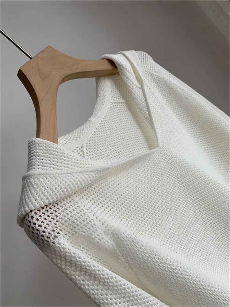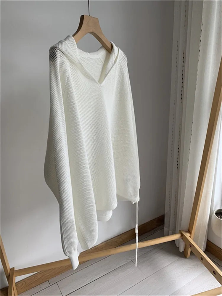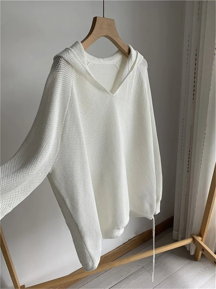 Lazy Style Women Hollow Out Hooded Knitwear Spring Summer White Long Sleeve Casual Loose Pullover Tops Female Sweater
