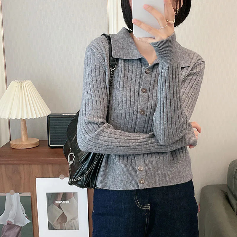 Lucyever High Quality Knit Cardigan Women Korean Fashion Turndown Collar Buttons Up Sweaters Solid Casual Long Sleeve Knitwear