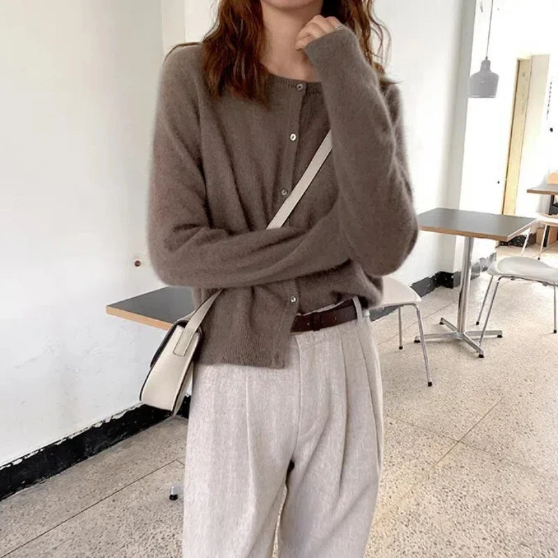 New Fashionable Round Neck Short Knitted Cardigan Loose Fit Casual Sweater Jacket for Women 234