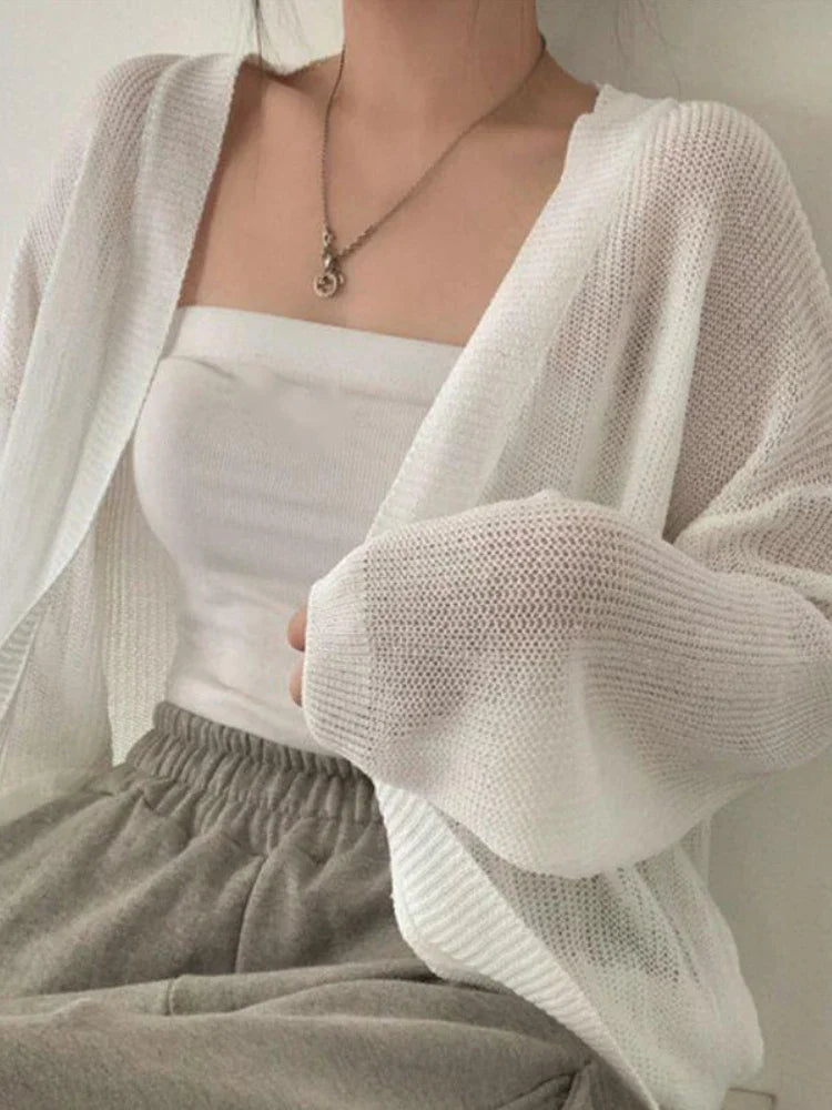 Thin White Cardigan Women Summer Sunscreen Lace-up Knitwear Tops Lady Korean Style Casual Long Sleeve Sun Protected Top 2025